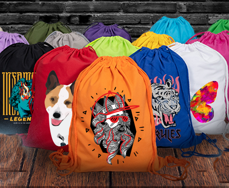We offer a wide variety of options: full color Direct to Film Printing, Embroidery, and Laser Engraving on apparel and accessories. Screen Printing is available for our bulk bags.