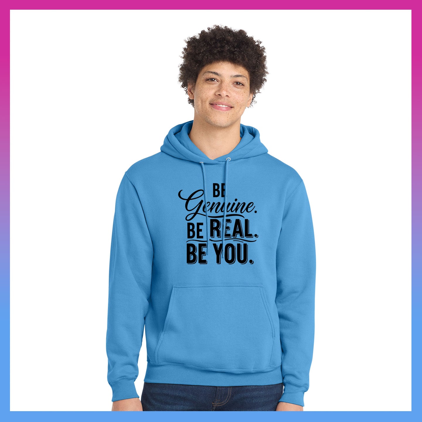 Domino Effect Apparel - Be Genuine Typography Printed Port & Co Pullover Hoodie