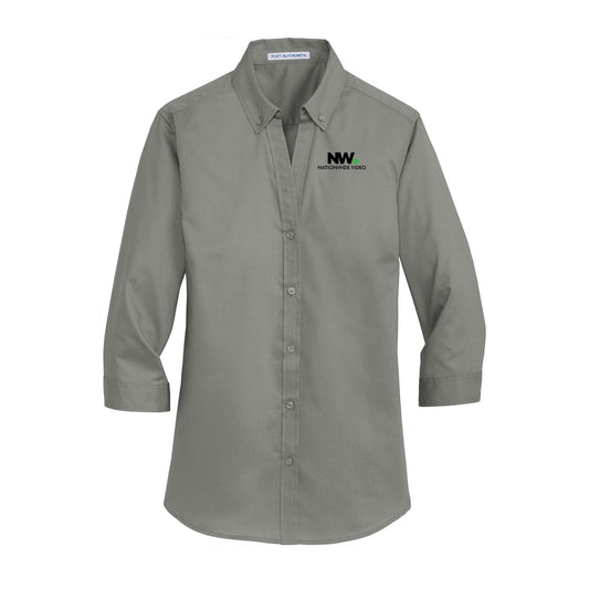 Nationwide Video Logo with Text Embroidered Port Authority® Ladies 3/4-Sleeve SuperPro™ Twill Shirt