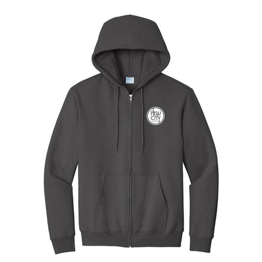 New City School - Left Chest Circle Print - Port & Company Essential Full Zip Hooded Sweatshirt