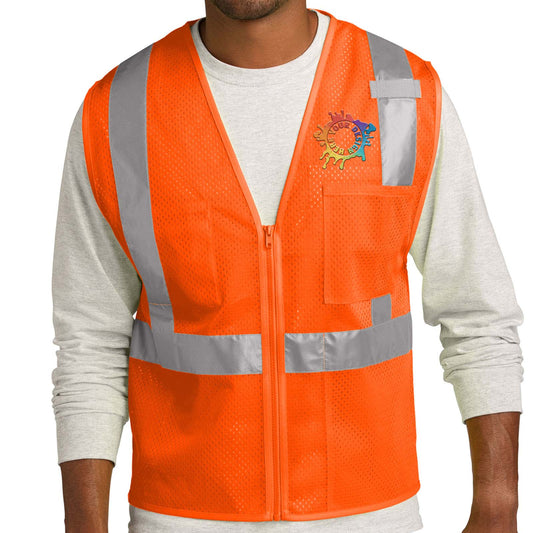 CornerStone® ANSI 107 Class 2 Mesh Six-Pocket Zippered Vest Embroidery