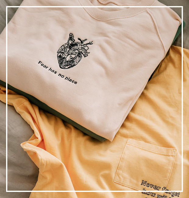 This process gives a garment a superior finish in comparison to other forms of embellishment. The threads give dimension and shine to words and images, instantly elevating the appearance of any garment or accessory.