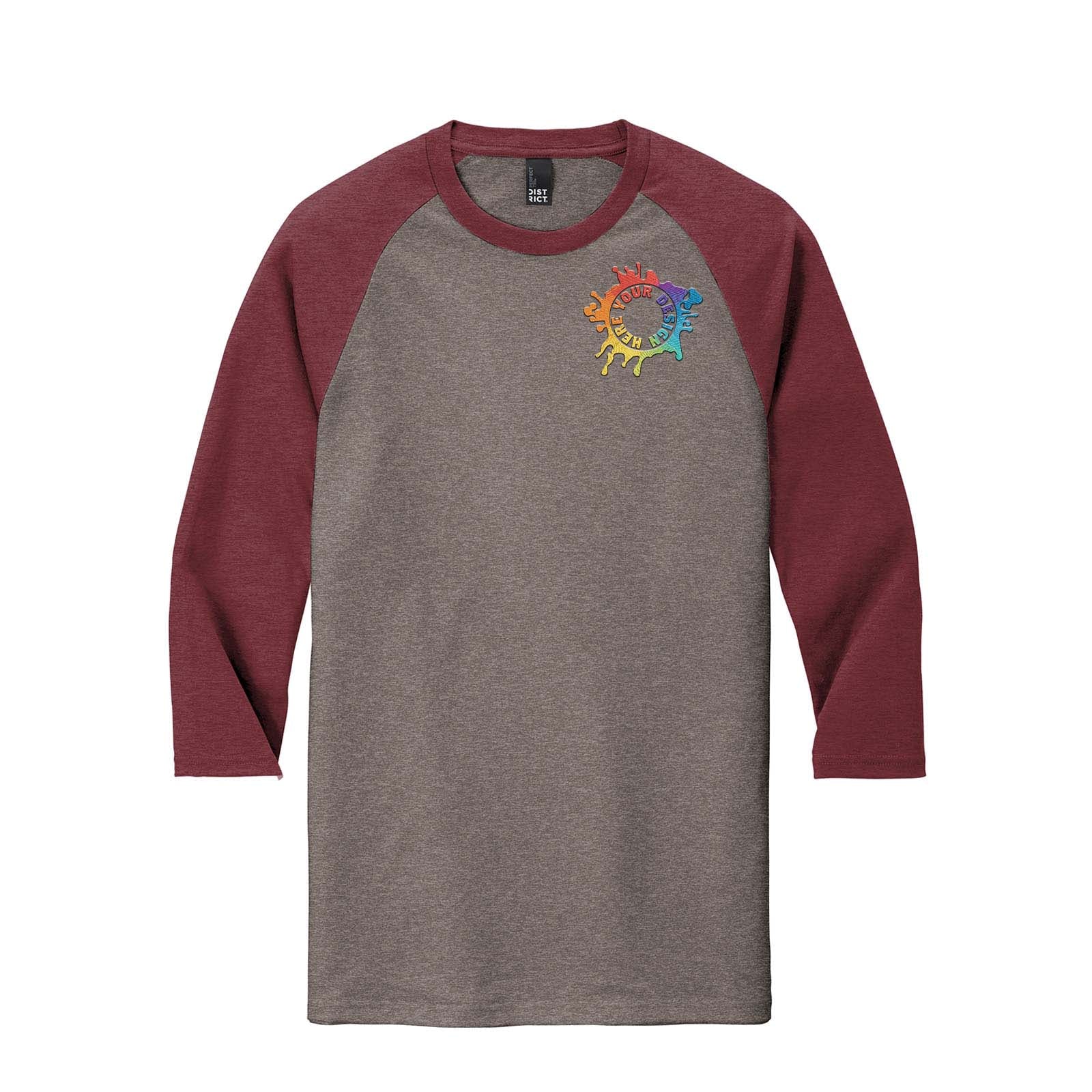 District Perfect Tri 3/4-Sleeve Raglan T Shirt Embroidery